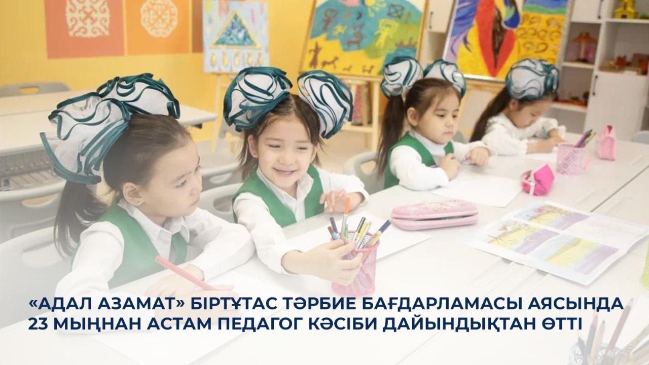 В соответствии с поручением Главы государства, начиная с этого учебного года, единая образовательная программа «Адал Азамат» полностью внедрена во всех образовательных учреждениях страны, независимо от форм собственности.
