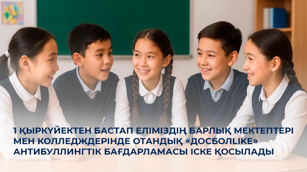 Жаңа оқу жылынан бастап Шымкент қаласының барлық мектептері мен колледждерінде алғаш рет отандық «ДосболLIKE» антибуллингтік бағдарламасы енгізілді. Бұл жоба балалар мен жасөспірімдер арасындағы буллингті азайтып, оқу орындарында қауіпсіз әрі қолайлы орта қалыптастыруға бағытталған.